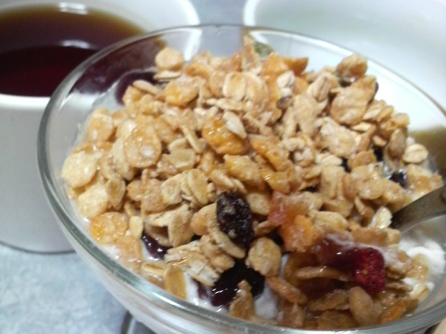 ヨーグルトにフルーツグラノーラをかけてみました(*´∨`*)