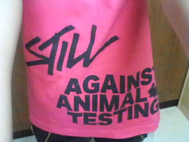 今日、写真のどピンクの動物実験反対Tシャツ着てる人が新潟の街中にいたら、それはあたしかもしれません…